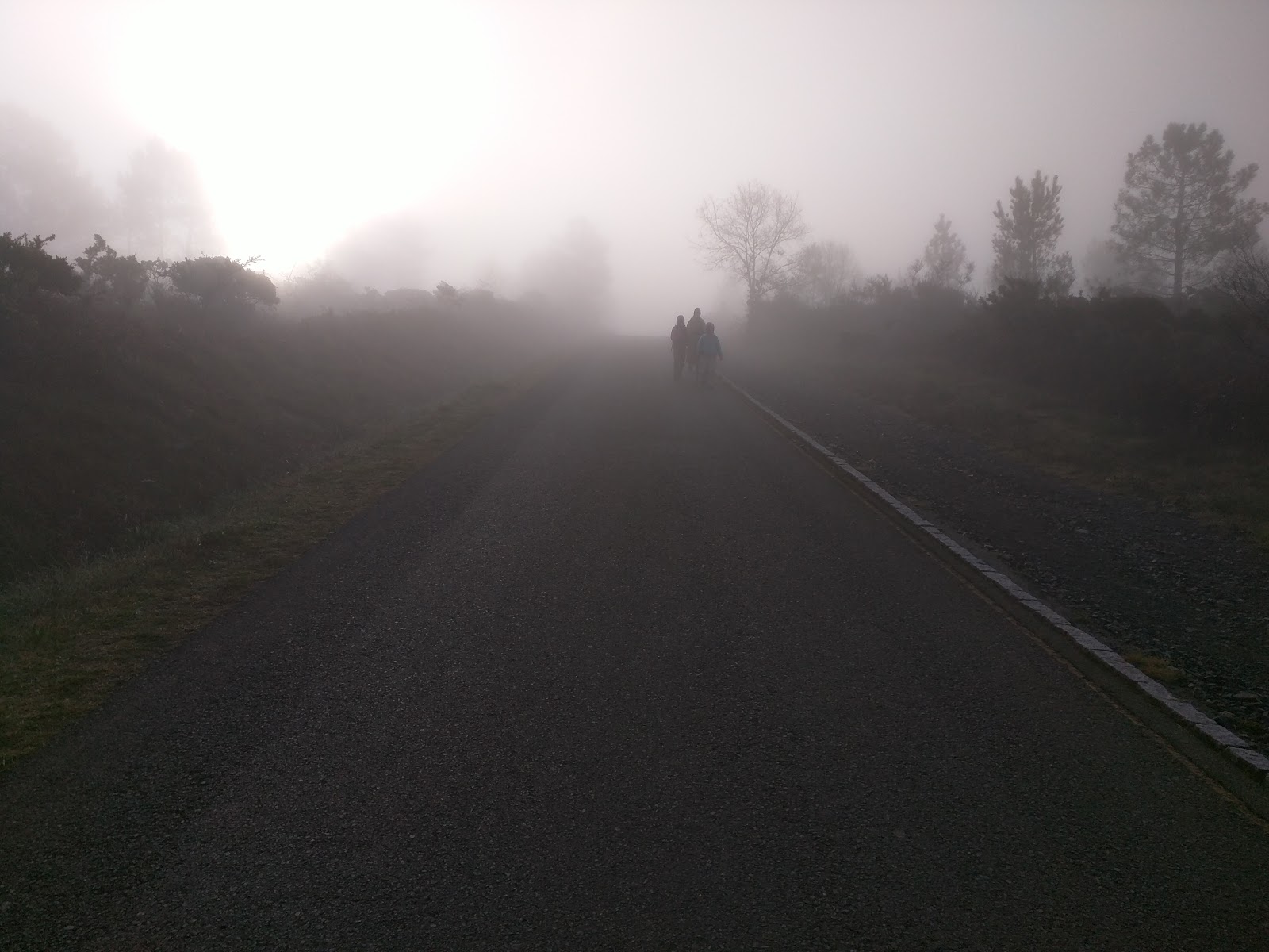 10pm Jose and I enjoy drinks while laundry is washing/dryingDistance covered: 23.23km/14.43miMia’s pedometer: 38,327 stepsAnother early morning and quick packing so we can get back out on the trail. There was a very heavy fog blanketing the landscape today. It looks very cool and a little mysterious, like in a movie and you don’t know what is going to emerge from the fog. We had to walk a little further to reach Palas de Rei for breakfast. Sometimes we don’t have a lot of options, it all depends on how far it is to the next town with a restaurant or grocery store. Generally speaking, the grocery stores are only in the larger towns. Some of these places that we go through are only a few buildings gathered together and no commercial options. Mia decided to walk with the slower team this morning because Erika has been pressuring her to walk with them.